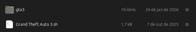 Quando a extração finalizar você vai ter uma pasta com nome de gta3, dentro dela você vai encontrar outra pasta gta3 e o arquivo Grand Theft Auto 3.sh